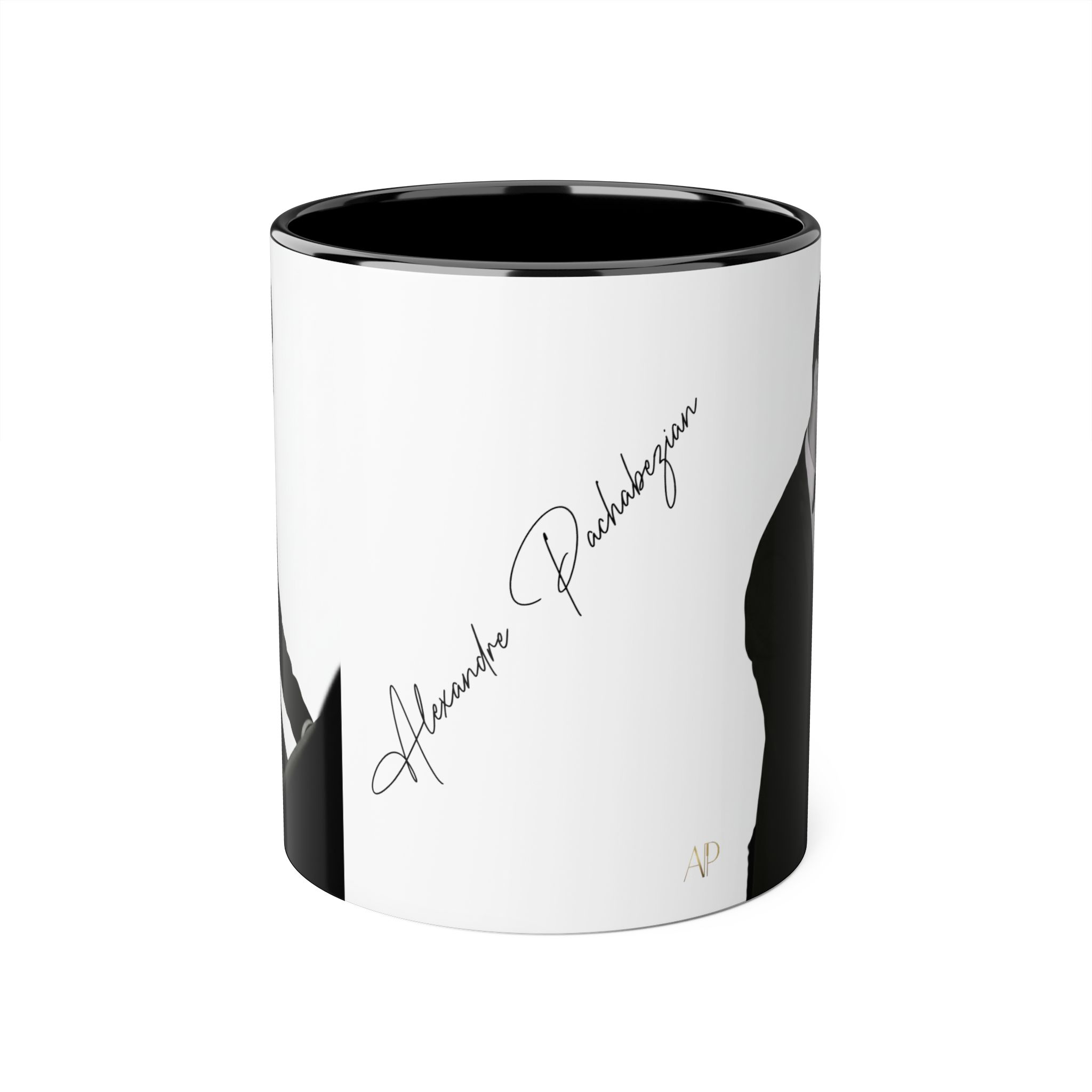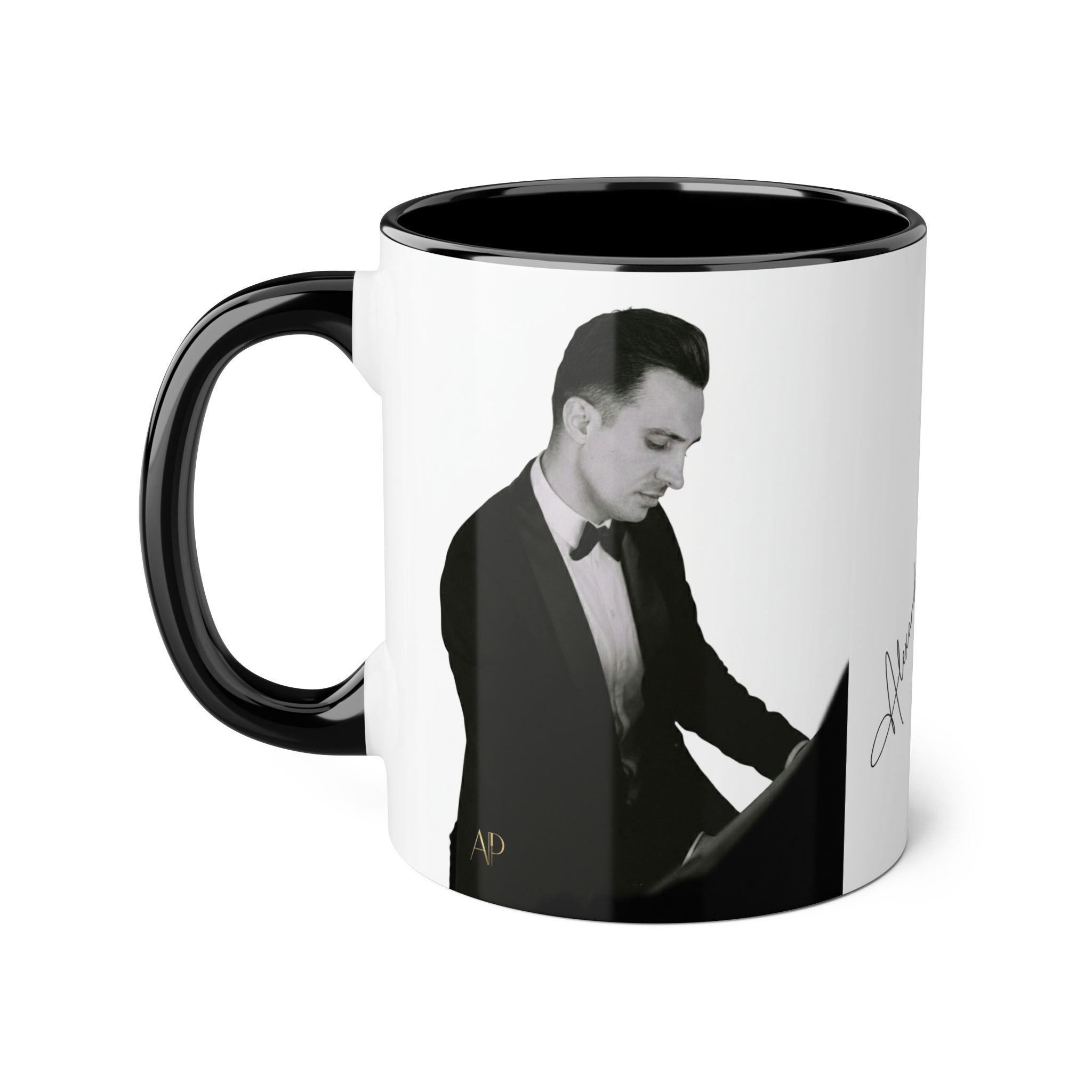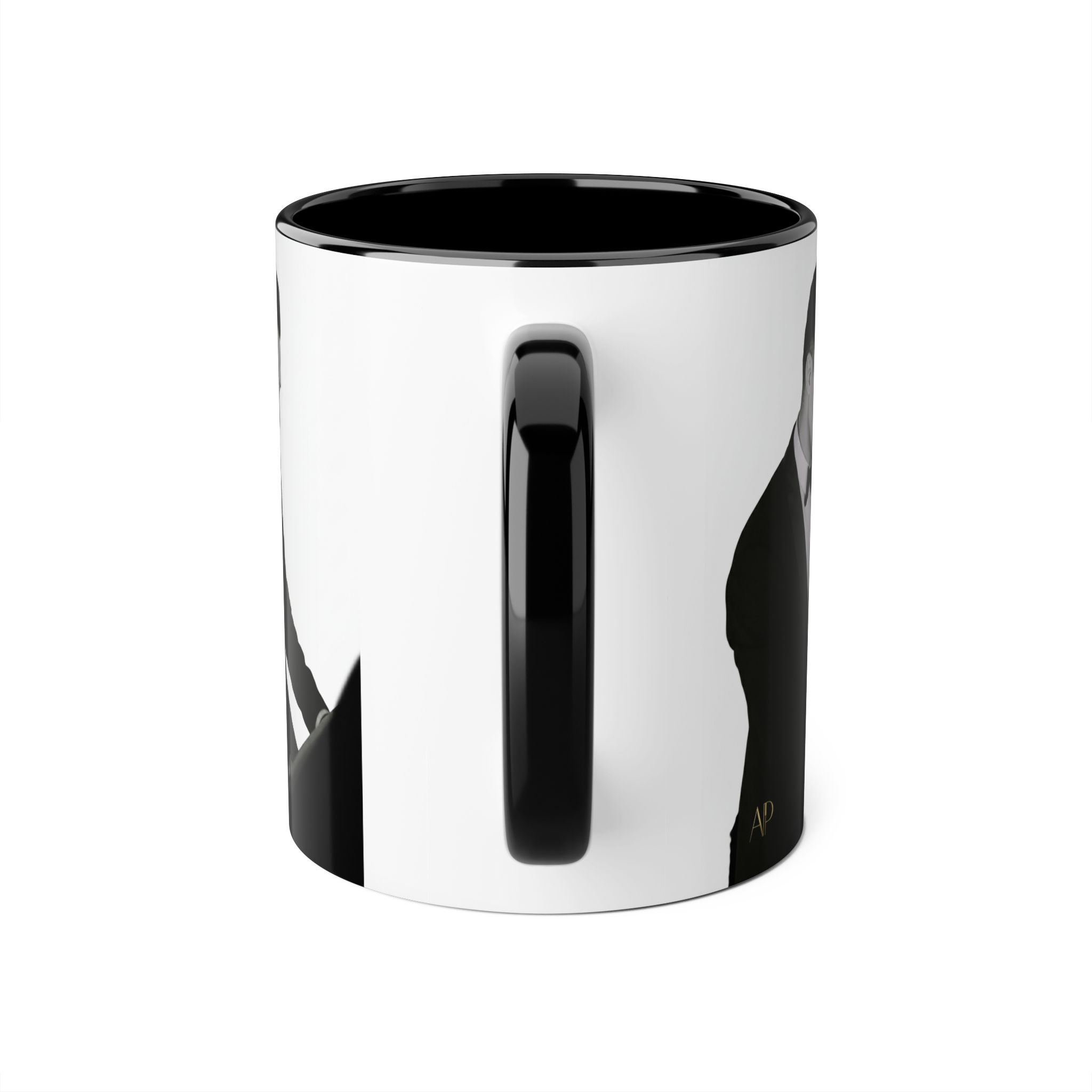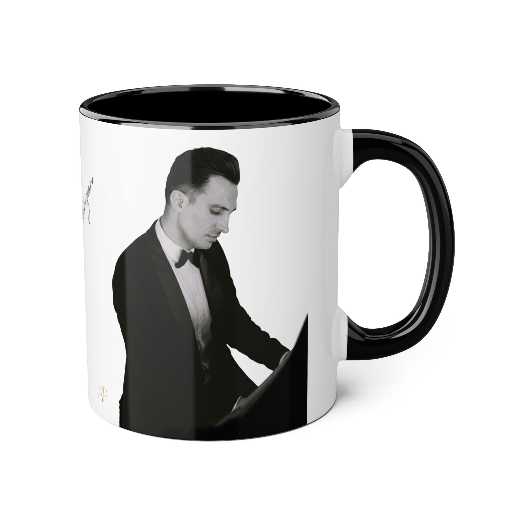 A classic 11 oz ceramic mug with a refined black-accent interior and handle, featuring a tasteful monochrome portrait and an elegant scripted signature. The smooth ORCA-coated surface holds bright, crisp prints and a scratch-resistant finish that withstands daily use. This mug brings a quiet, sophisticated energy to morning routines — the hush of a practice room, the focus before a performance, or a slow cup while poring over sheet music. It feels like a small piece of a musician’s world: poised, intentional, and quietly personal. Slip it into a cozy corner of your kitchen or place it on the piano beside a stack of scores; the design reads like a note of dedication rather than loud branding.